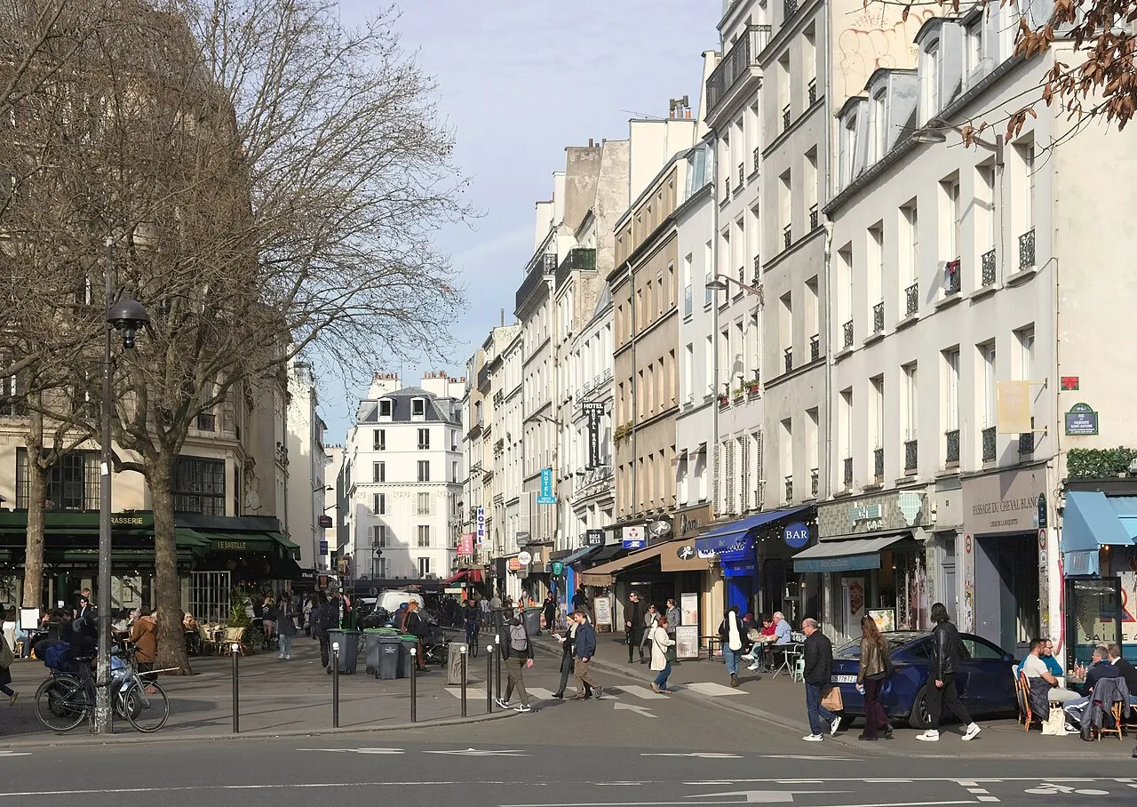 Local da antiga prisão da Bastilha e conhecido por suas oficinas de artesãos